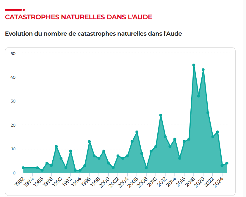 Évolution du nombre de catastrophes naturelles dans l’Aude